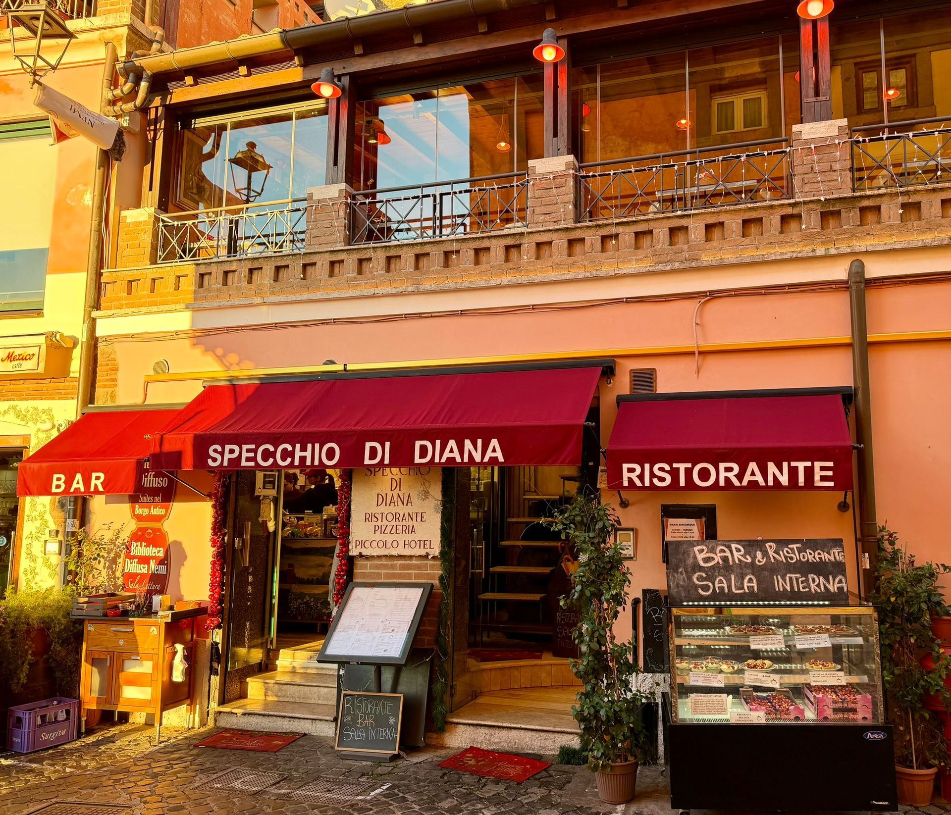 We are, by tradition, a point of reference for hospitality in the Castelli Romani, born as Antica Trattoria de Sanctis and guest house in 1816, we continued our activity over the years transforming ourselves, in 2012, into 'Albergo Diffuso', in order to combine our aptitude for hospitality with a more targeted enhancement of the Borgo di Nemi that hosts us.