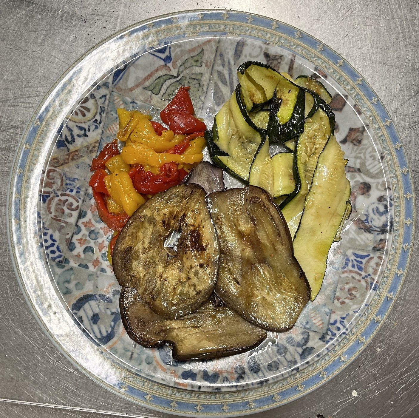 Pomodoro, mozzarella, zucchini, melanzane, peperoni